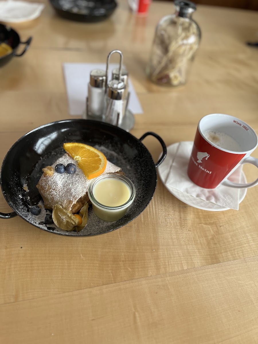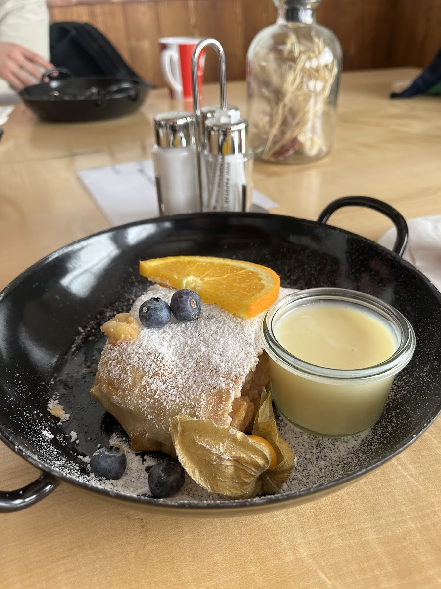 The menu focuses on hearty mountain fare that suits the setting perfectly. Many visitors come here for a full meal after hiking or sightseeing around Hafelekar. The portions are satisfying and comforting, exactly what you want after spending time in the crisp Alpine air. One standout item is the Apple Strudel, a classic Austrian dessert that’s both simple and unforgettable. Served warm, with soft layers of pastry and sweet apple filling, it’s the kind of treat that perfectly complements a hot drink while you admire the view outside.